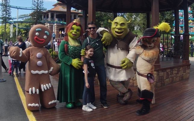 De lá fomos na primeira montanha russa, “a pequena” de três montanhas russas do parque, a Tigor Mountain, só pra aquecer os motores. Dali passamos por várias outras atrações muito legais, como tirar fotos com os personagens dos filmes Madagascar e Shrek, e o zoológico onde a Sara pôde andar de pônei, o que deixou ela eufórica! Teleférico, roda gigante e por aí vai!