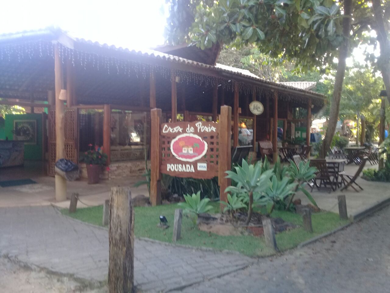 Optamos por uma pousada indicada por amigos daqui, a Casa de Praia – localizada a 80 metros do mar. Pesquisando sobre a pousada, já nos interessou saber que ela dispunha de berço no quarto, além de ter um espaço para crianças (brinquedoteca). Além disso, pareceu ser uma pousada tranquila, mais “família”.