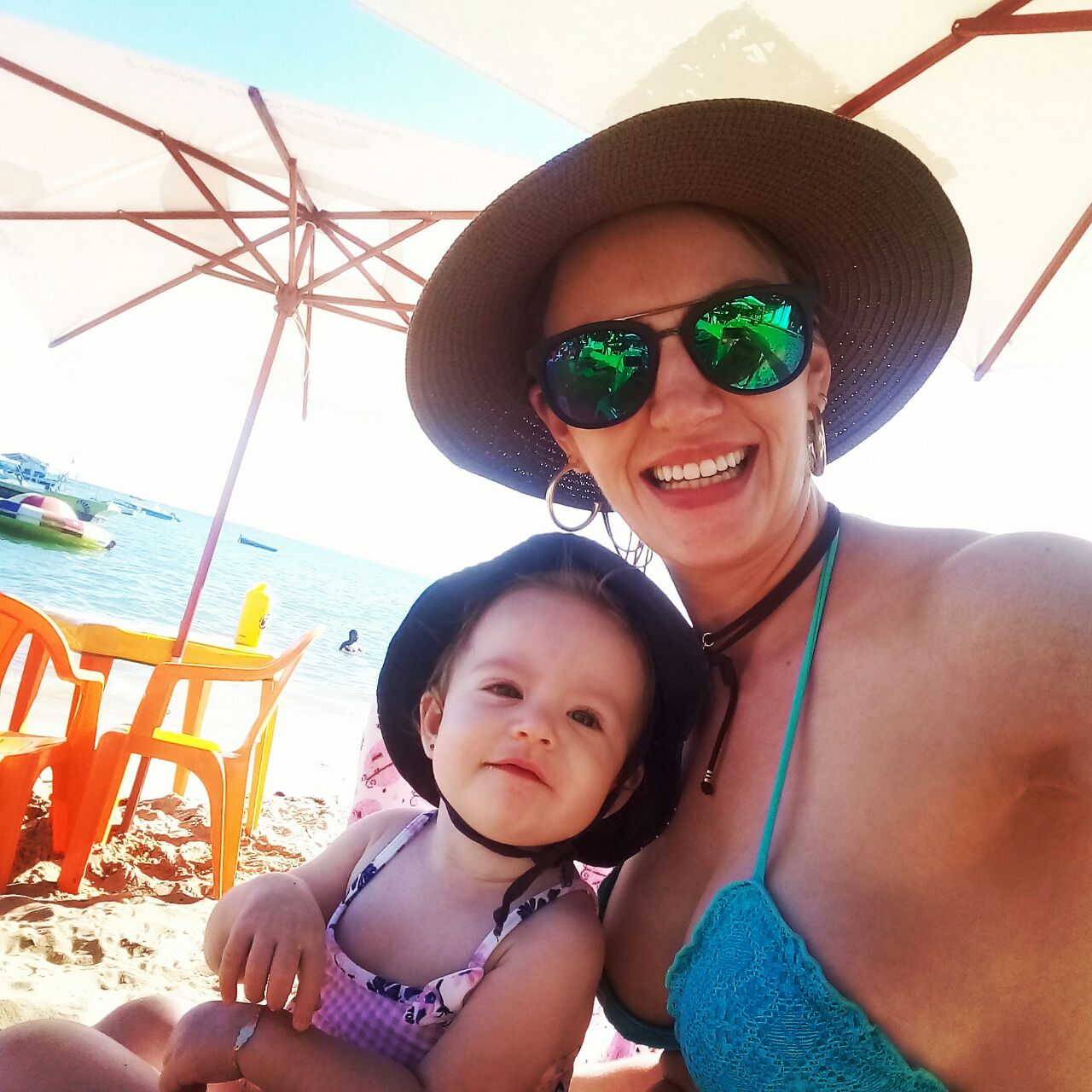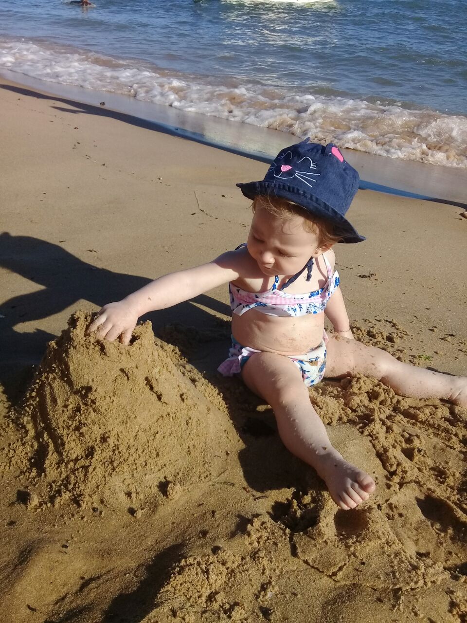 A praia ficava a poucos passos da pousada, mar tranquilo, mais parecia uma piscina gigante. O único ponto negativo foi o pouco espaço na areia (que estava um pouco suja) para deixar a Natália brincar à vontade. Preferimos explorar um pouco mais a faixa mais próxima à água para ela brincar. O serviço na praia era muito bom, mas não tinha banheiro próximo, o mais perto era da pousada.